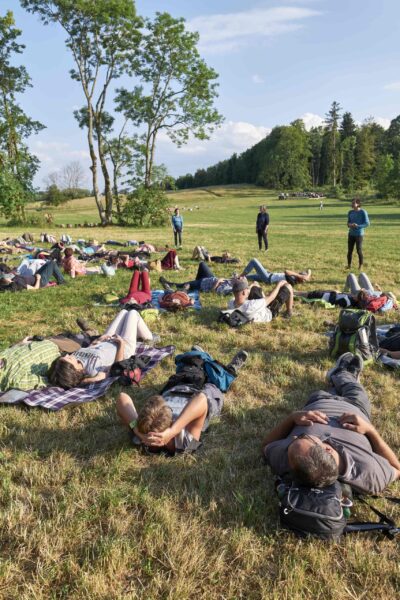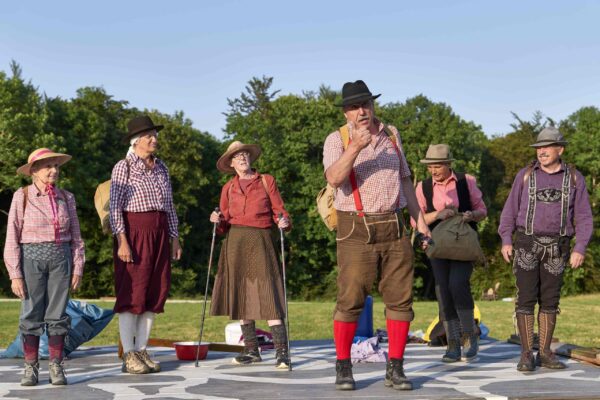Pause: Bitte bringen Sie zur Theaterwanderung eine Picknickdecke mit. Es gibt eine Pausensituation, wo sie ihr mitgebrachtes Vesper verzehren können. Außerdem gibt es während der Wanderung immer wieder unterschiedliche Sitzgelegenheiten, für die eine Unterlage hilfreich ist.