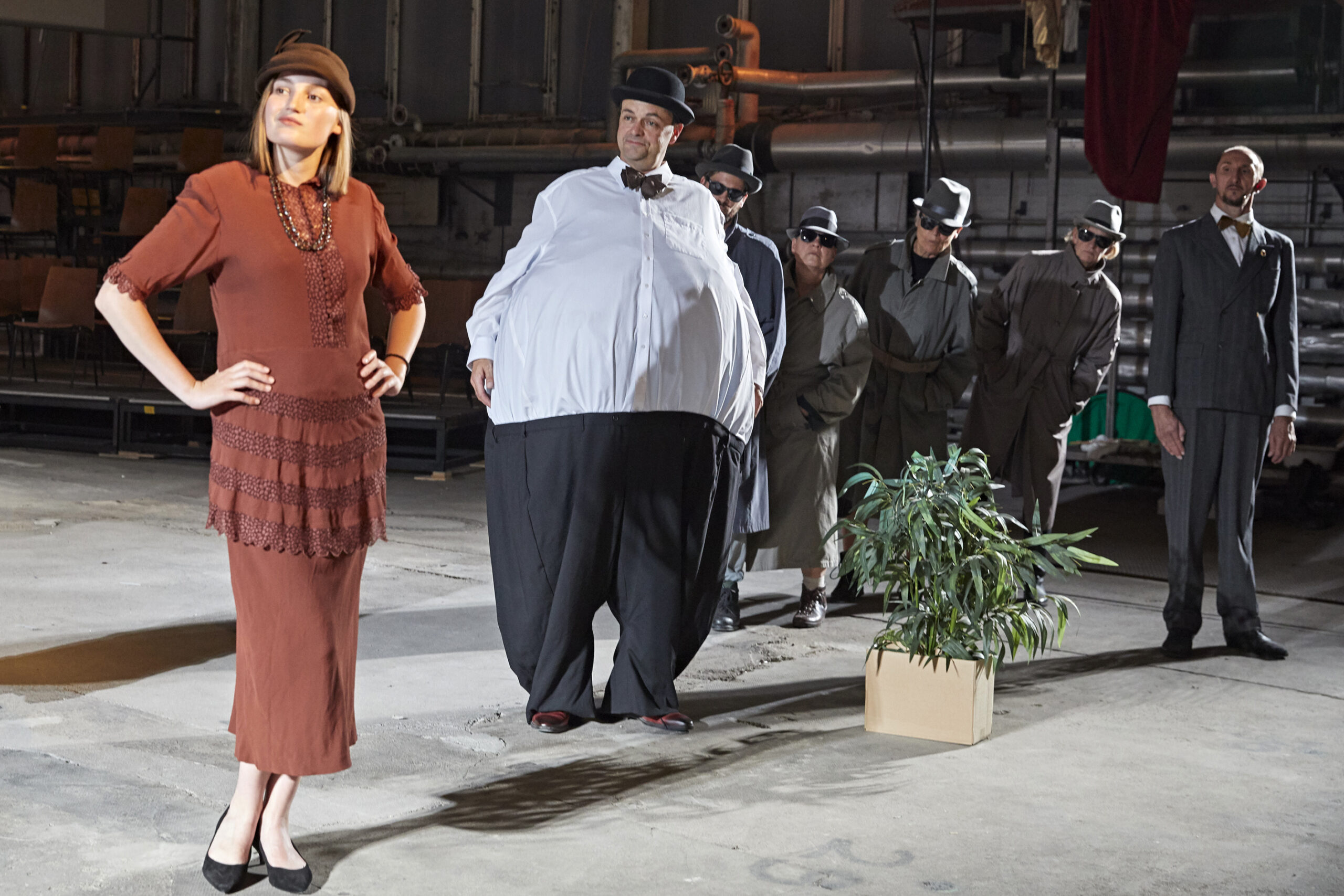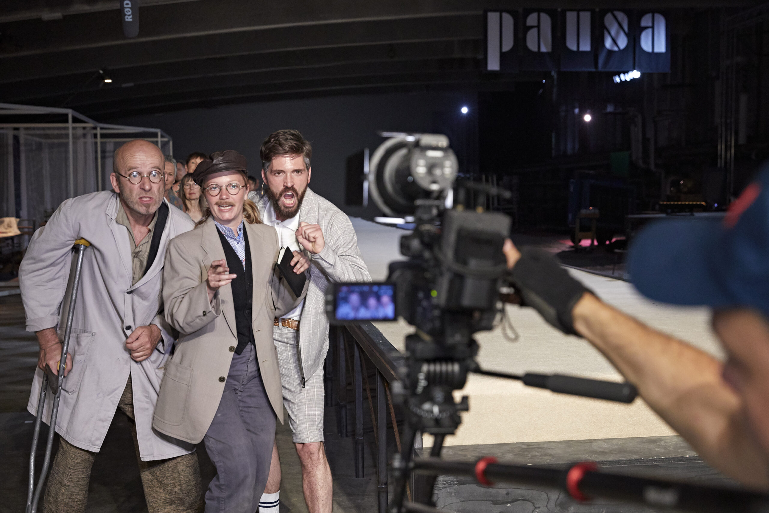 „Aufstieg und Fall einer Firma“ – das klingt nach Brecht, nach Lehrstück und Dialektik. Die Mössinger Firma heißt Pausa, und in ihren denkmalgeschützten Hallen inszenierte Philipp Becker die Chronik des bewährten Lindenhof-Geschichtsschreibers Franz Xaver Ott mit Musik von Johannes Hofmann. Die ausverkaufte Premiere am Donnerstagabend war ein Fest und wohl auch der Höhepunkt des Festivals „100 Jahre Pausa – 100 Jahre Bauhaus“. An Brecht’schen Verfremdungseffekten fehlte es nicht. Deren Verdichtung – und eine ganz besondere Pointe – bewahrte sich „Aufstieg und Fall einer Firma“, Pausa – ein Stück Geschichte“ bis fast zum Schluss auf. Neben dem Lindenhof-Ensemble waren wieder die Württembergische Philharmonie Reutlingen und eine über 40 Mössinger Mitspieler starke Gruppe von Arbeiter-Statisten auf der Bühne. Dies Bühne und ihre schier unermessliche Tiefe spielte natürlich eine ganz eigene und besondere Rolle. […] Aus der Not dieser grandiosen Tiefe des Raums mit dem endlosen Laufsteg machte Regisseur Philipp Becker eine Tugend, die an die besten Zeiten des Tübinger Zimmertheaters erinnerte, als das Duo Dünßer-Kukla erstmals Video einsetzte. Zwei Leinwände vorn und eine weitere ganz am Ende der Bogenhalle wurden live von einem Filmteam aber auch mit vorgefertigten Clips und dokumentarischen Szenen bespielt: Perspektivenwechsel oder verrätselt-verfremdete Dopplung der Szene, Nahaufnahmen und Zoom aufs Fernste. [… ] In den zwei durchgängig tragenden Rollen des Pausa-Hausmeisters und der verschiedenen Schultesse (bis hin zum ersten OB Werner Fifka) glänzten Berthold Biesinger und der ewig die Fräcke wechselnde Karlheinz Schmitt. „Hört genau hin! Die Massen betreten die Bühne der Geschichte“, sagt der Ansager zum Einzug des Orchesters und der Statisten. Ein bisschen viel an Reden, Parolen, Berichten und Manifesten, auch an lehrhaften Sinnsprüchen und Merksätzen begleitet schon diesen Aufstiegsteil, während es an szenischer Handlung eher ein wenig mangelt. Aber die Neigung zum epischen Thesen-Theater gehört eben auch zur Brecht-Manier. (Martin Bernklau)