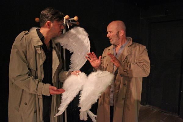 Die beiden Engel Toni und Flori werden in brenzligen Situationen auf die Erde geschickt, um den Menschen zu helfen. Ihr Einsatzgebiet: die Schwäbische Alb. Daher sprechen sie natürlich auch fließend schwäbisch… Was die beiden erleben und wie sie mit den Situationen umgehen, macht nachdenklich, ist urkomisch und bitterböse. Nach den Kurzfilmen im Web jetzt im Film-Theater-Projekt leibhaftig auf der Bühne! „Diese Mischung aus Film und Bühne mit ihren festen Running Gags, aus boshaft-bitterer Satire, drolliger Komik und viel breiter schwäbischer Heimatliebe, sie könnte zu einer ausbaufähigen unendlichen Geschichte werden…Das Premierenpublikum war begeistert.“(GEA)
