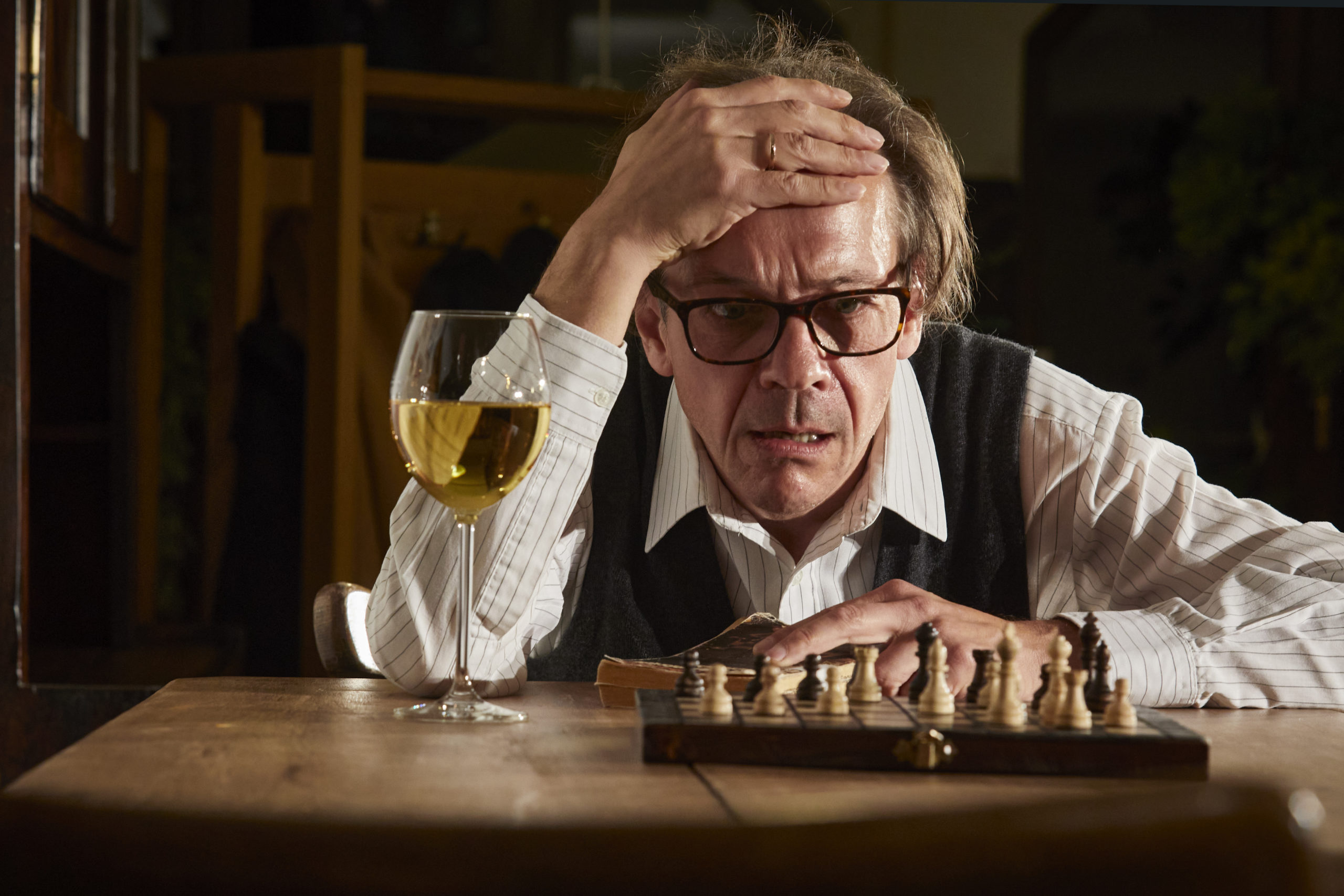 Mit leichter, spielerischer Hand wird eine einzigartige Liebesgeschichte in den Wirren des Zweiten Weltkriegs erzählt, die bis heute wirkt und in welche die beiden Schachspieler durch ihre Vorfahren verwoben sind. Das witzige, spannungsreiche und versöhnliche Stück von Stefan Vögel wurde am Theater Lindenhof uraufgeführt und 2019 mit dem Publikumspreis der Hamburger Privattheatertage ausgezeichnet.