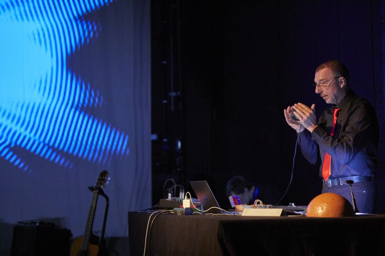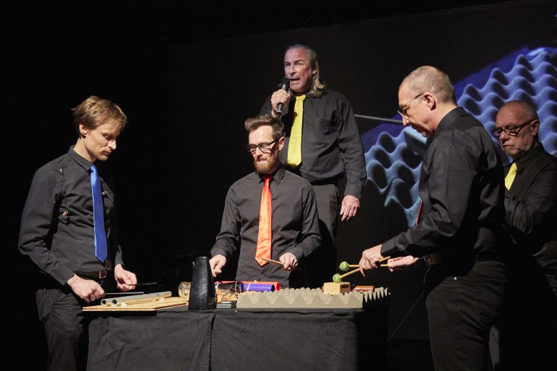 Ein inszeniertes Hörstück von Wolfgang Schnitzer und Stefan Hallmayer" feierte in der Pausa in Mössingen Premiere – und setzte die Bauhausidee, verschiedene Künste zu einer Einheit zusammenzuführen, ausdrucksstark um. Das Publikum bekam bei der Premiere weder Komisches noch Leichtes geboten, sondern etwas Experimentelles, auf das es sich einlassen musste. Die Performance haben die fünf Künstler gemeinsam, sozusagen im "Prinzip Coop", auf die Beine gestellt: Es sind Theatermacher Stefan Hallmayer, Komponist Wolfgang Schnitzer, Michael Armingeon, Sven Edler und Steffen Hollenweger. Da entstanden vor einer – vielleicht etwas zu klein bemessenen Videoleinwand – beeindruckende Bilder aus Farbe und Licht, während Armingeon seine Hände spielerisch über einen Bildschirm gleiten ließ. Da tanzten kleine weiße oder rote Teilchen im Schwarmverhalten, wurden zu Notenpixeln und erzeugten Töne. Da verwandelten sich grafische Objekte mit Hilfe modernster Technik wie Echo, Hall, Verzerrer und Filter in bunte Bilder. Hallmayer zitierte, rezitierte und schrie Texte von Gropius, Mies van der Rohe, Oskar Schlemmer und Hannes Mayer ins Mikrofon. Oder er ließ sie, am Suchlauf eines alten Radios drehend, einfach als O-Ton abspielen. Er hatte diese Auszüge wohl gewählt. Die Künstler leisteten ihren Beitrag dazu, Lust zu machen auf mehr, Möglichkeiten nachzuspüren und sich einzulassen auf Unbekanntes. Prinzip Mut. (Erika Rapthel-Kieser )