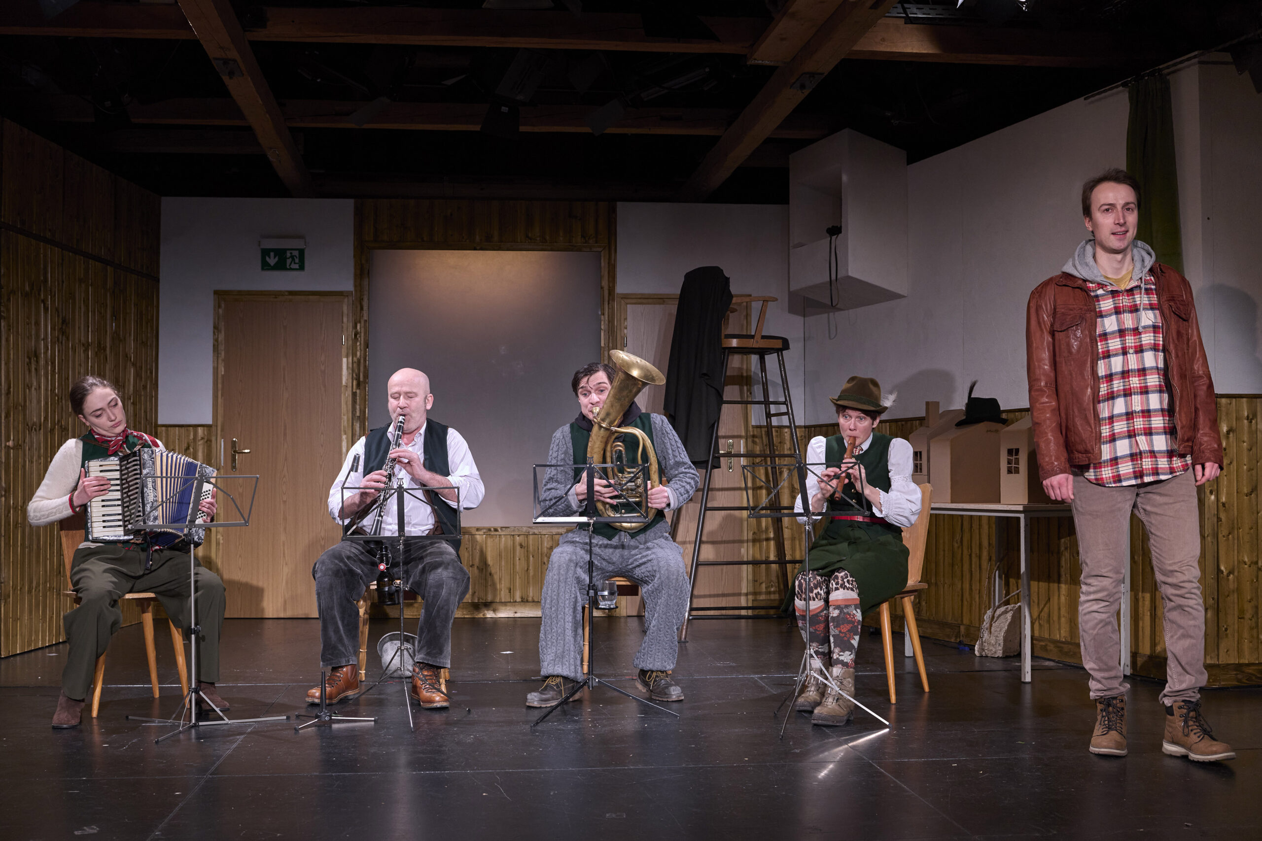 Es spielen: Berthold Biesinger, Hannah Im Hof, Rino Hosennen, Linda Schlepps, Luca Zahn