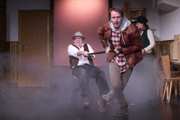 Endlich wieder eine Komödie mit regionalem Flair am Theater Lindenhof! Wenn auch eine mit tiefschwarzen Rändern. In dem Stück zutage tritt der bürokratische Irrsinn, aber zugleich auch die bockbeinige schwäbische Mentalität, die dagegen antritt: Was der Opa gebaut hat, das gibt man nicht wieder her! Das Stück ist hervorragend inszeniert, steckt voller kurioser Regieeinfälle, die es kurzweilig machen. Es gibt viel zu lachen. Herausragend Berthold Biesinger, der unter anderem den Vater von Andreas verkörpert, einen pragmatischen schwäbischen Schaffer, und der dann wieder in der nächsten Szene die Gestalt eines Dorfschlaules annimmt; einem Typen, dem man in vielen Ortschaften begegnen dürfte. Das überregionale Publikum war begeistert, schüttelte die Köpfe, wenn sich eine neue Amtsverdrehung einstellte und alles was Andreas erreicht zu haben glaubte, wieder ad absurdum geführt wurde. Man hätte gerne gewusst, ob die Zuschauer lachten, weil sie das, was da dargestellt wurde, für einen auf die Spitze getriebenen Klamauk hielten. Burladinger Hüttenbesitzer, hätten da etwas anderes zu erzählen gehabt. Ihnen wäre die Geschichte sehr realitätsnah vorgekommen. (Matthias Badura)