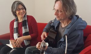Die Lesung wird begleitet von Bernhard Mohl, Tübinger Musiker und regelmäßiger Gast auf der Bühne des Theater Lindenhof mit Vertonungen einiger Miniaturen von Sabine Stahl und eigenen Liedern.