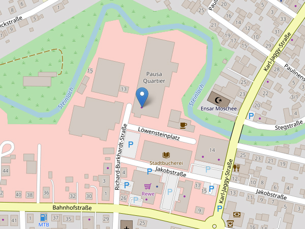 Die Parkplätze und der Weg zur Bogenhalle in der Pausa sind ausgeschildert. Parkmöglichkeiten gibt es am Jakob-Stotz-Platz und am Schulzentrum