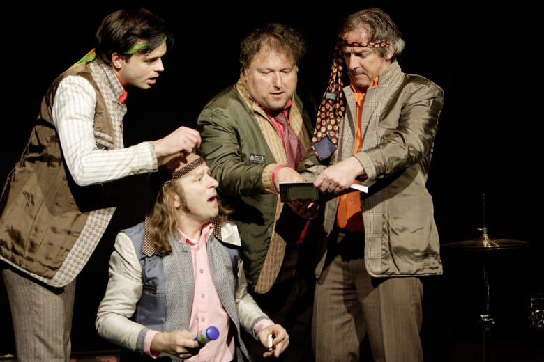 In Dietlinde Elsässers kurzweiliger Inszenierung stolpern die vier Chaosmusiker mit ebenso drolligen wie hilflosen Gesichtern durch ihre unfreiwillige Weltreise und reißen das Publikum mit jedem Missgeschick zu neuen Lachsalven hin.