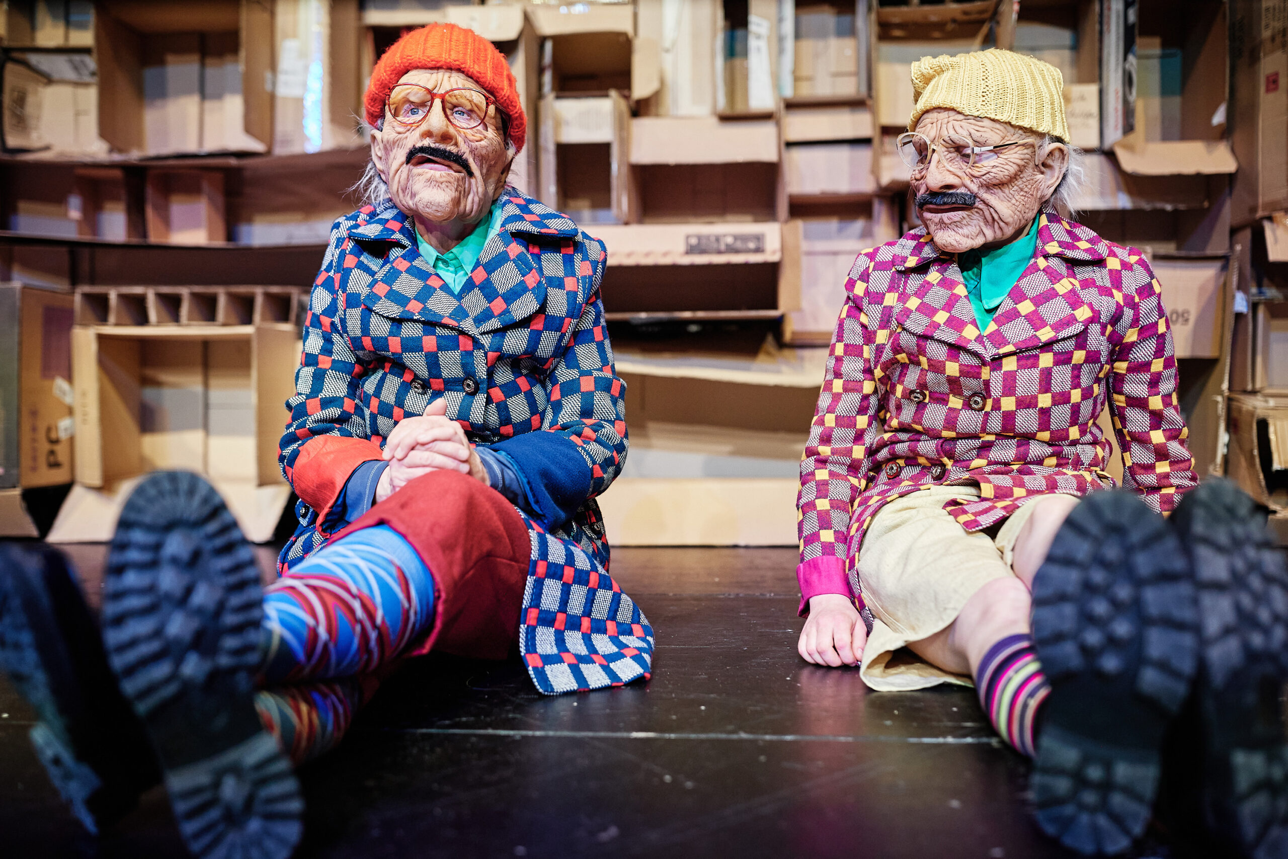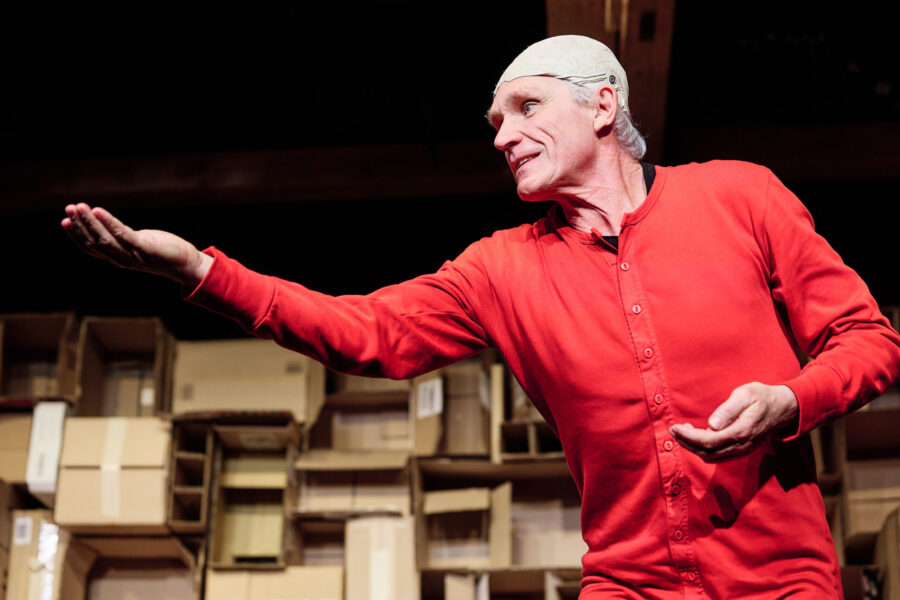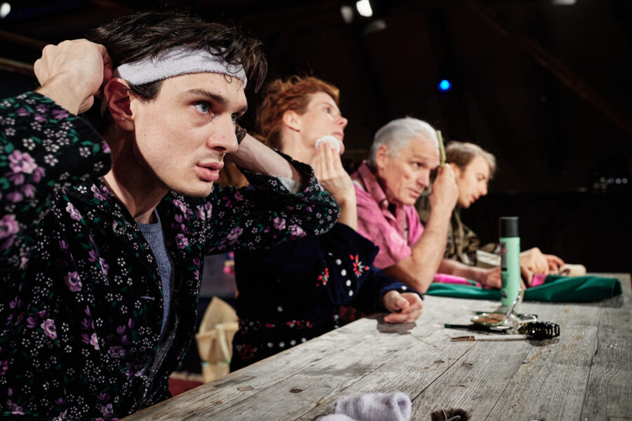 Hoffen, träumen, Trotz. Selbstzweifel und Verzweiflung hier, Zynismus und Sarkasmus dort. Es ist ein Sprechtheater, ein Gedankentheater, textgetriebenes Theater, ein paar Gags und allerlei Wortwitz eingeschlossen in dieser ersten Hälfte. Sieben Typen, zwischen Karikatur und Stilisierung konturiert, stellen dabei – von der kleinen Liebesleid-Geschichte abgesehen – lauter gleichberechtigte Nebenrollen vor. Das Team, die Truppe, das Ensemble ist das Subjekt, trägt die Hauptrolle. Aber die Theaterfamilie fällt zusammen und fällt auseinander. Völliger Wechsel nach der Pause. Jetzt folgen fünf, sechs Nummern, die eigentlich zu den archaischsten und anarchischsten Wurzeln des Schauspiels hinabsteigen: zu Pantomime, Clownerie und Slapstick-Elementen, die zuweilen an chaplineskes Format heranreichen. In gewisser Weise kehrt auch der Lindenhof an seine Wurzeln zurück (auf völlig andere Art als beim „Verkauften Großvater“). Es sind die starken, sehr deutungsoffenen Bilder und Symbole, die in Urszenen eingebettet werden. Luca Zahn gibt zur Einführung den französischen Conferencier in eleganter Melancholie mit Frack und Zylinder. Grandios wie die beiden, als moribunde Greise maskierten Frauen, wohl Hannah im Hof und Carola Schwelien, ein ganzes Liebesleben mit Fürsorge und Tod stilisieren. Schroff nebeneinander stehen stille Tragik, schriller Klamauk und sanfte Poesie, Apokalypse, Endzeit und Clownerie. Das Enigmatische, vieldeutig Rätselhafte und Deutungsoffene verstanden die Zuschauer sehr genau und freuten sich auch an dem improvisatorischen Charakter, den diese andere Art von Theater hatte. Ein großer und langer Applaus samt Trampeln und Johlen war der Dank. (Martin Bernklau) https://cul-tu-re.de/lindenhof-der-tod-des-theaters/