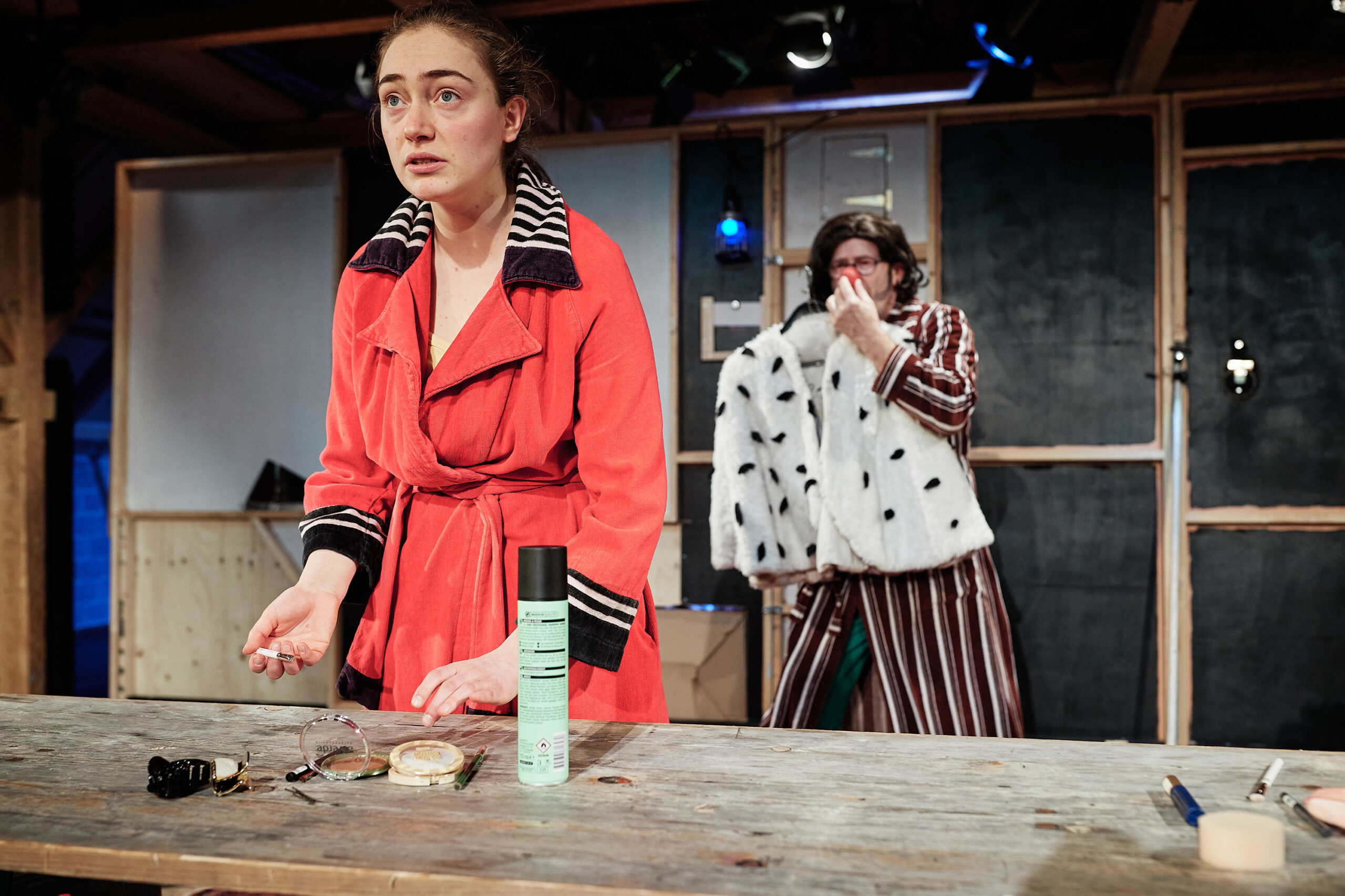 Eine Schauspieltruppe ist seit vielen Jahren erfolgreich mit einem Theaterabend im ganzen Land unterwegs, bei dem das Publikum die Ereignisse auf der Bühne mitbestimmen kann. Keine Aufführung gleicht der anderen. Doch kurz vor der heutigen Vorstellung erhalten die Spieler eine Nachricht, die klar macht, so wie bisher wird es nicht weitergehen. Unruhe macht sich breit, doch gleich beginnt die Show, gleich müssen die Spieler auf die Bühne. Wir erleben einen Theaterabend aus zwei Perspektiven. Im ersten Teil verfolgen wir das Spiel hinter der Bühne: Gespräche und Diskussionen, das Ringen mit dem Kostüm, die Konzentration vor dem Spiegel, kleine Dramen und neckende Gesten, Liebesgeflüster und Wutausbrüche. Wir erleben die einzelnen Schauspieler kurz vor ihrem Auftritt und kurz danach. Im zweiten Teil geht der Theaterabend von neuem los. Wir sehen dieselbe Aufführung, nur aus der anderen Perspektive. Es ist ein Bühnenspiel fast ohne Worte und doch ein buntes Geschehen, voll Überraschungen und Emotionen, voll Leichtigkeit und Tiefgang.