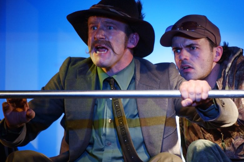 Zwei Männer auf einem Hochsitz schwadronieren über alle möglichen und unmöglichen Themen zwischen Himmel und Hölle. Und was die zwei Schützen ohne Schonung so von sich geben, geht auf keine Rehhaut. Die beiden Männer im grünen Häs verkörpern zwei schießwütige Kanaillen mit Intelligenzquotienten zwischen Amöbe und Straßenbahngleis. Also nicht gerade eine gute Werbung für die jagende Zunft. Aber fürs Amüsement der Zuschauer ein Schuss ins Schwarze.