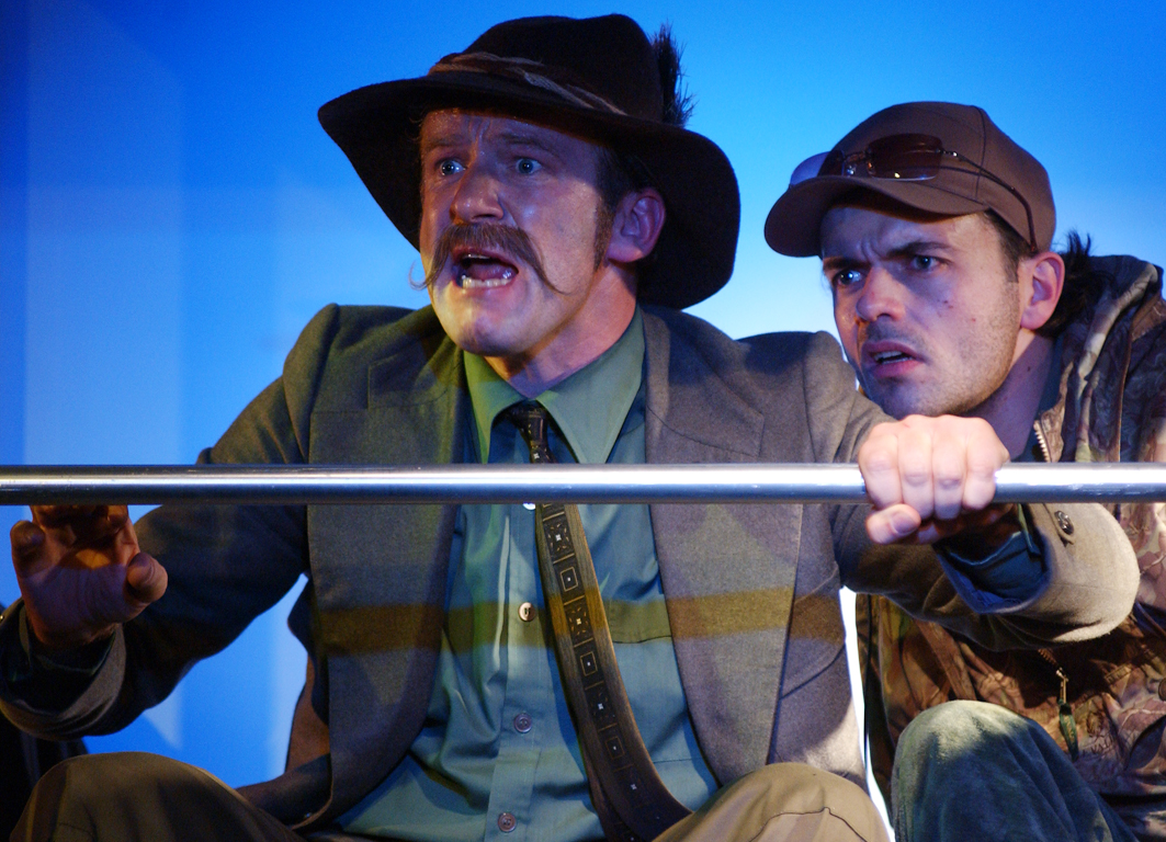 Was ihr waidmännisches Handwerk anbelangt, gelingt den beiden Hubertusjüngern nicht sonderlich viel: Sie verpassen mehrere kapitale Sauen, ballern stattdessen in die feindlich dünkende Umwelt und erlegen zuletzt eine Rotte von sechs Spaziergängern. Von diesen Blattschüssen abgesehen, liegen die beiden Stümper wie gesagt meistens saumäßig daneben. Und eben das ist hervorragend getroffen. (...) das Publikum schüttelte sich vor wonnigem Grausen und feierte nach Aktschluss Regie und Darsteller.