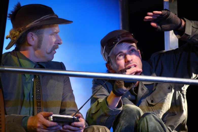 „Dieses Stück könnte man sich auch auf den großen Bühnen in Deutschland vorstellen – hätten die einen Berthold Biesinger und Franz Xaver Ott. Die beiden Lindenhof-Urgesteine machen unter der ausgefeilten Regie von Siegfried Bühr die Geschichte der beiden schwäbischen Monteure, die hoch oben in der Windparkgondel fest sitzen, zu einem fast eineinhalbstündigen, irrwitzig-absurden Parforceritt durch die Moderne. Da kommt fast alles zur Sprache, was der interessierte Zuschauer je in den inflationär häufig gewordenen Talkshows der Republik, diversen politischen Satiren oder den Nachrichten schon mal gelesen und gehört hat. Susanne Hinkelbeins Stück hat durchaus dadaistische Züge, was zur Kritik an der Moderne und ihrer Schnelllebigkeit passt. Tiefgang hat das Ganze auch durch den Wiedererkennungseffekt, den so manche, wenn auch skurril-gesteigerte Szene, beim Zuschauer hervorruft. Denn der kann assoziieren was er will. Und deshalb steckt so viel drin, in diesem Stück. Freier und besser kann die Kunst nicht sein.“
