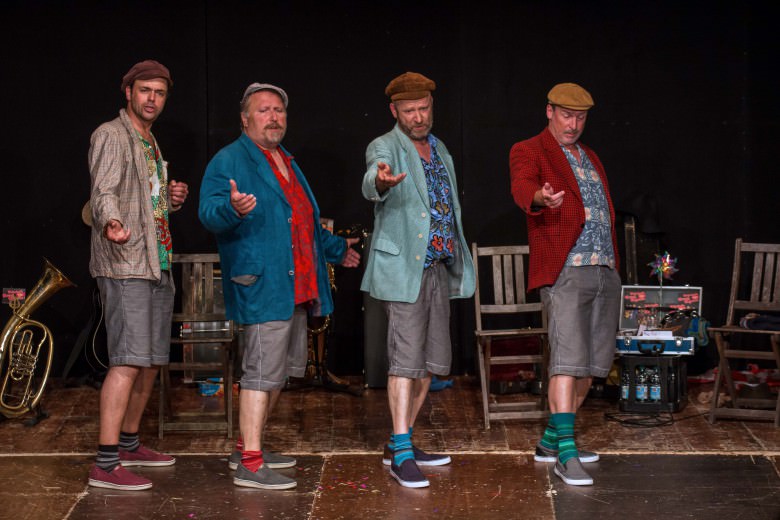 In Dietlinde Elsässers kurzweiliger Inszenierung stolpern die vier Chaosmusiker mit ebenso drolligen wie hilflosen Gesichtern durch ihre unfreiwillige Weltreise und reißen das Publikum mit jedem Missgeschick zu neuen Lachsalven hin.