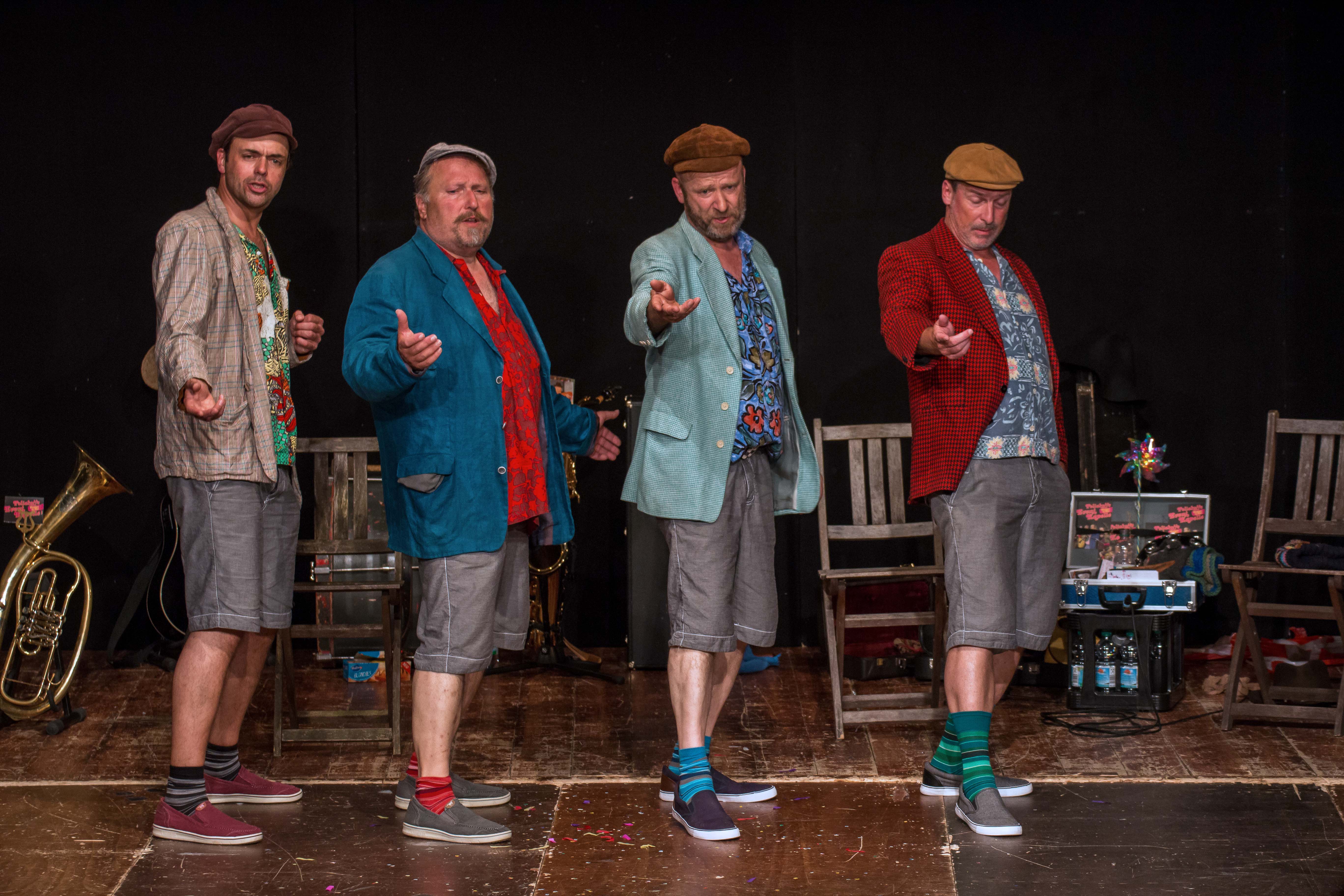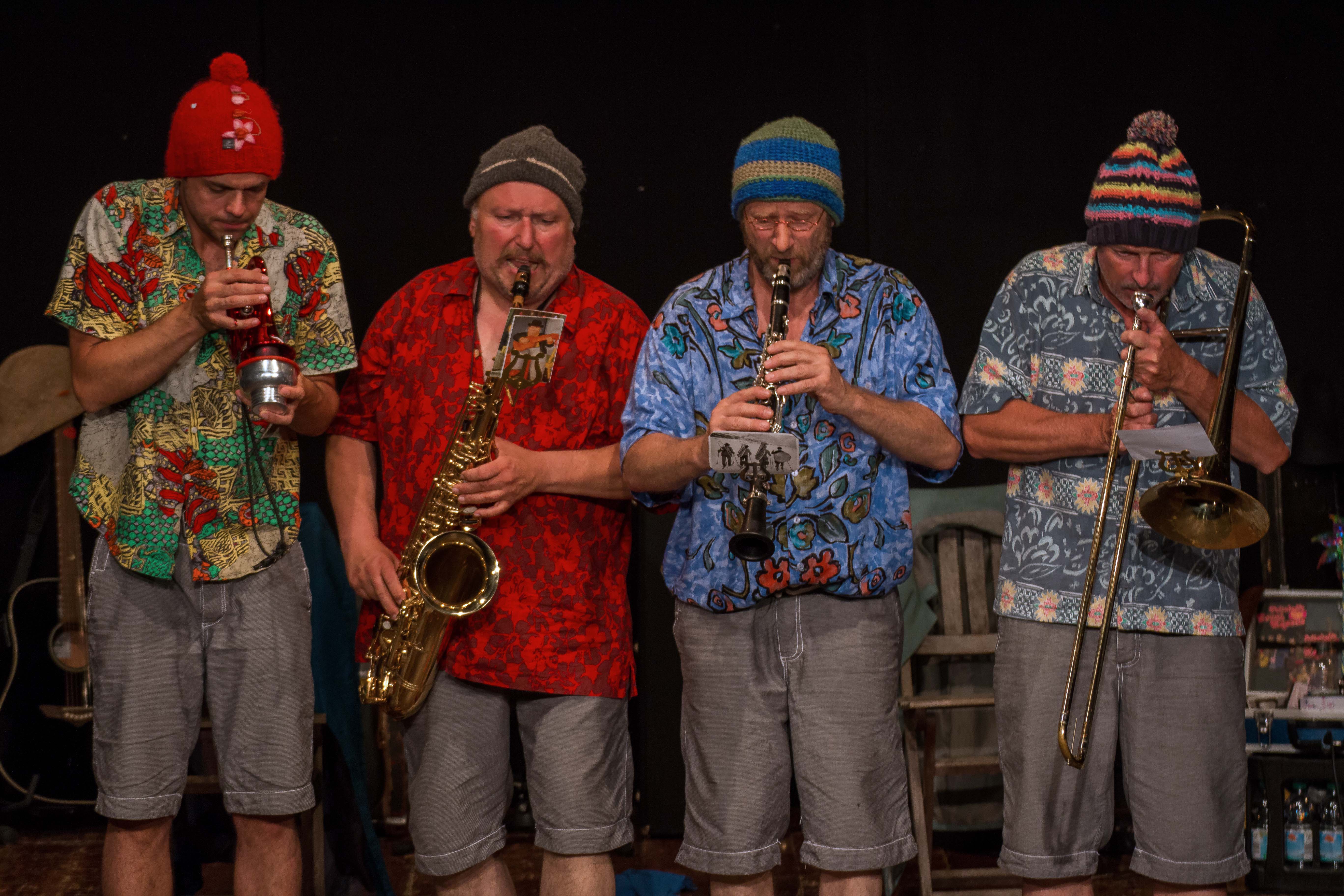Aufgespielt haben sie als Könner an Posaune, Akkordeon, Mundharmonika, Klarinette, Horn, Saxophon, Trommel, Ukulele, Gitarre und Percussions. Sie intonierten Seemanns-Lieder und Western-Songs, spielten Märsche, rappten, jazzten, rockten und gefielen nicht zuletzt mit ihrem mehrstimmigen A-capella-Gesang. Komödiantische Unterhaltung mit Musik hatten sie versprochen – und gehalten! (Waltraud Wolf, 12.11.2018 )